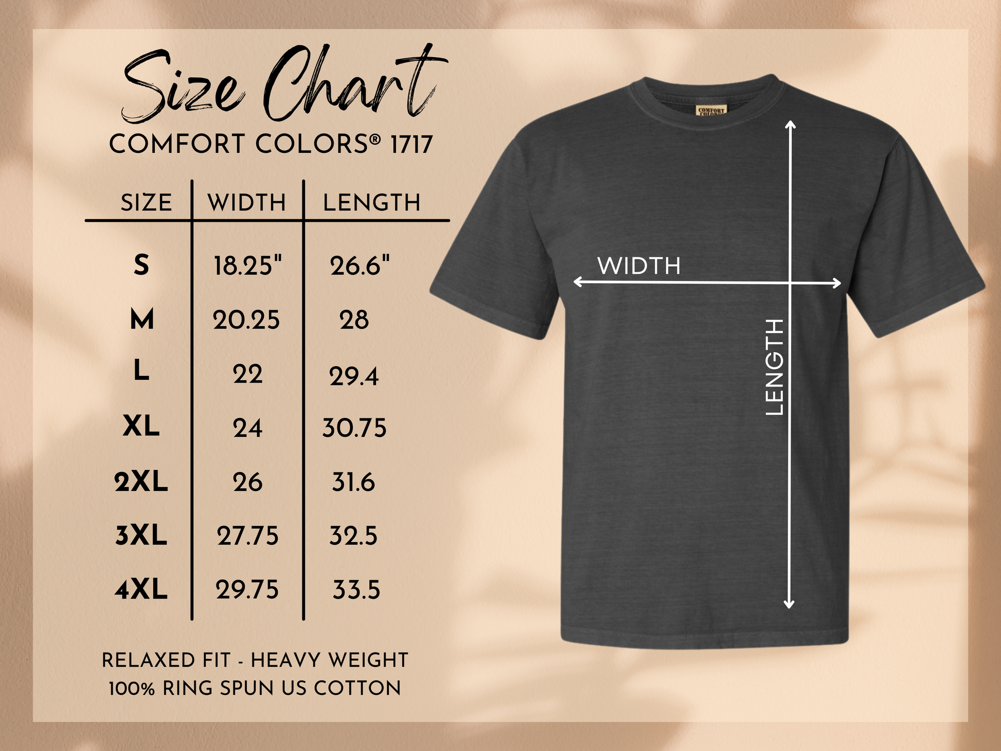 These are comfort colors unisex 100% cotton t-shirts. Each shirt is made to order to your specifications. Turnaround time is 5-7 business days.